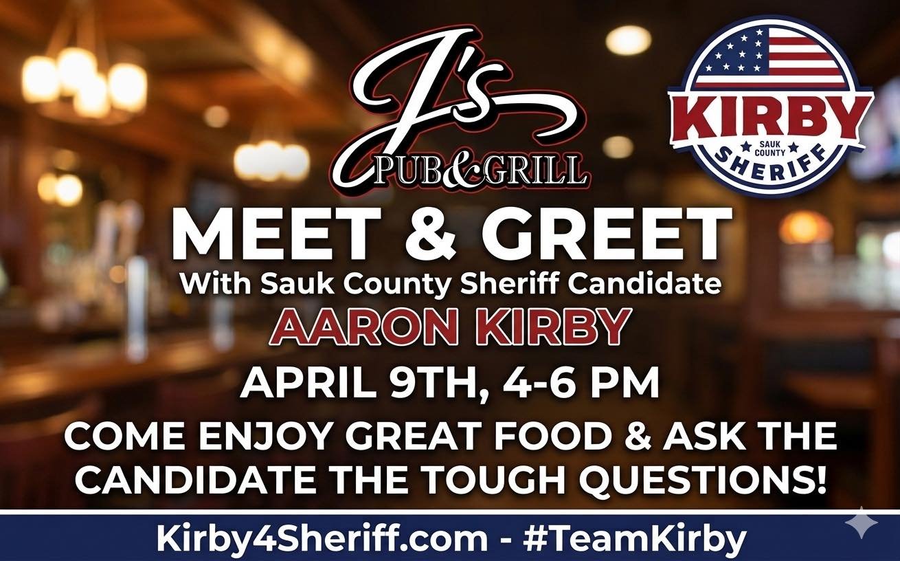 Sauk County deserves a Sheriff with real law enforcement experience, proven leadership, and strong community ties. Aaron Kirby brings a unique combination of frontline policing and business leadership that sets him apart from all other candidates.